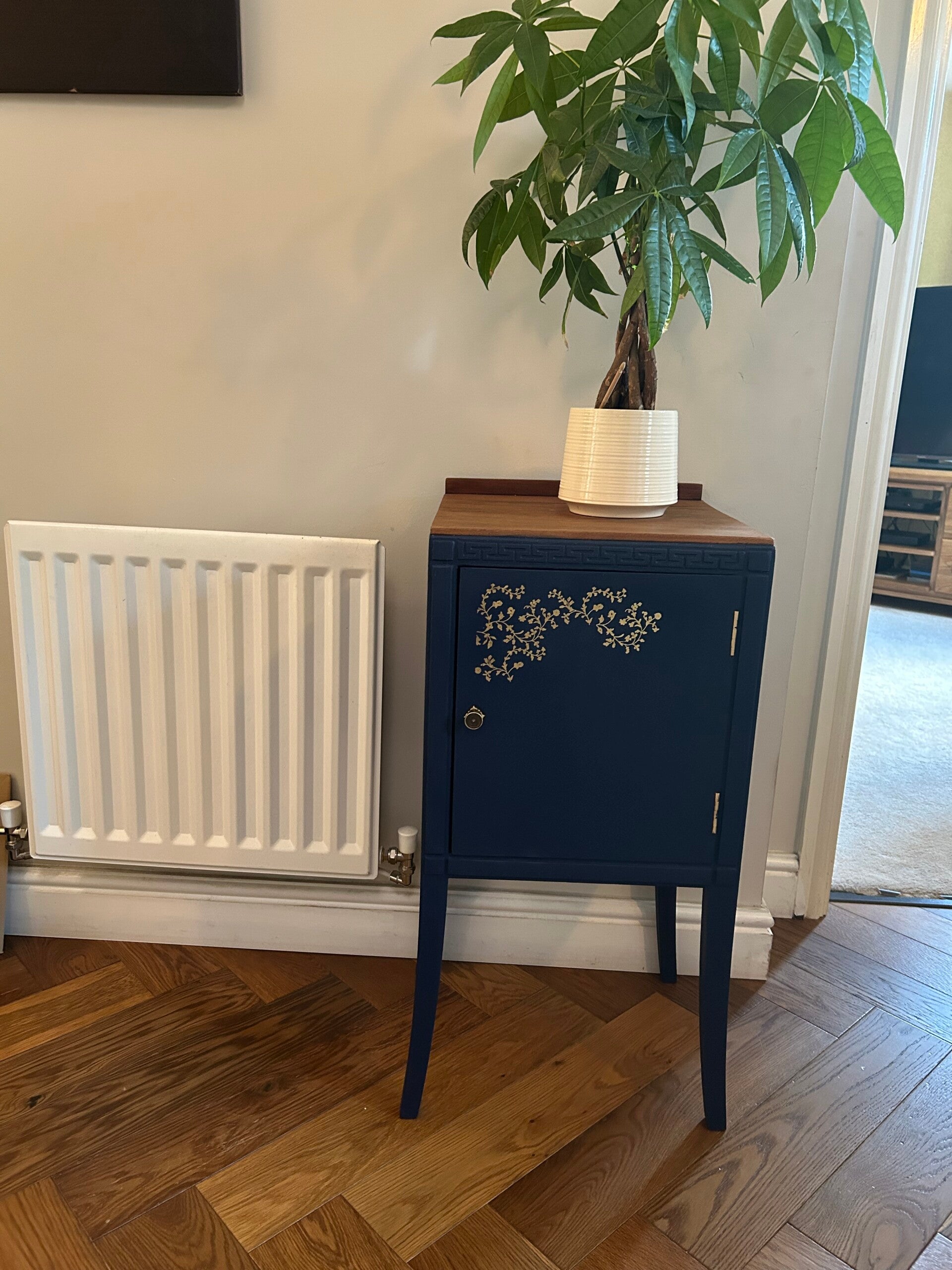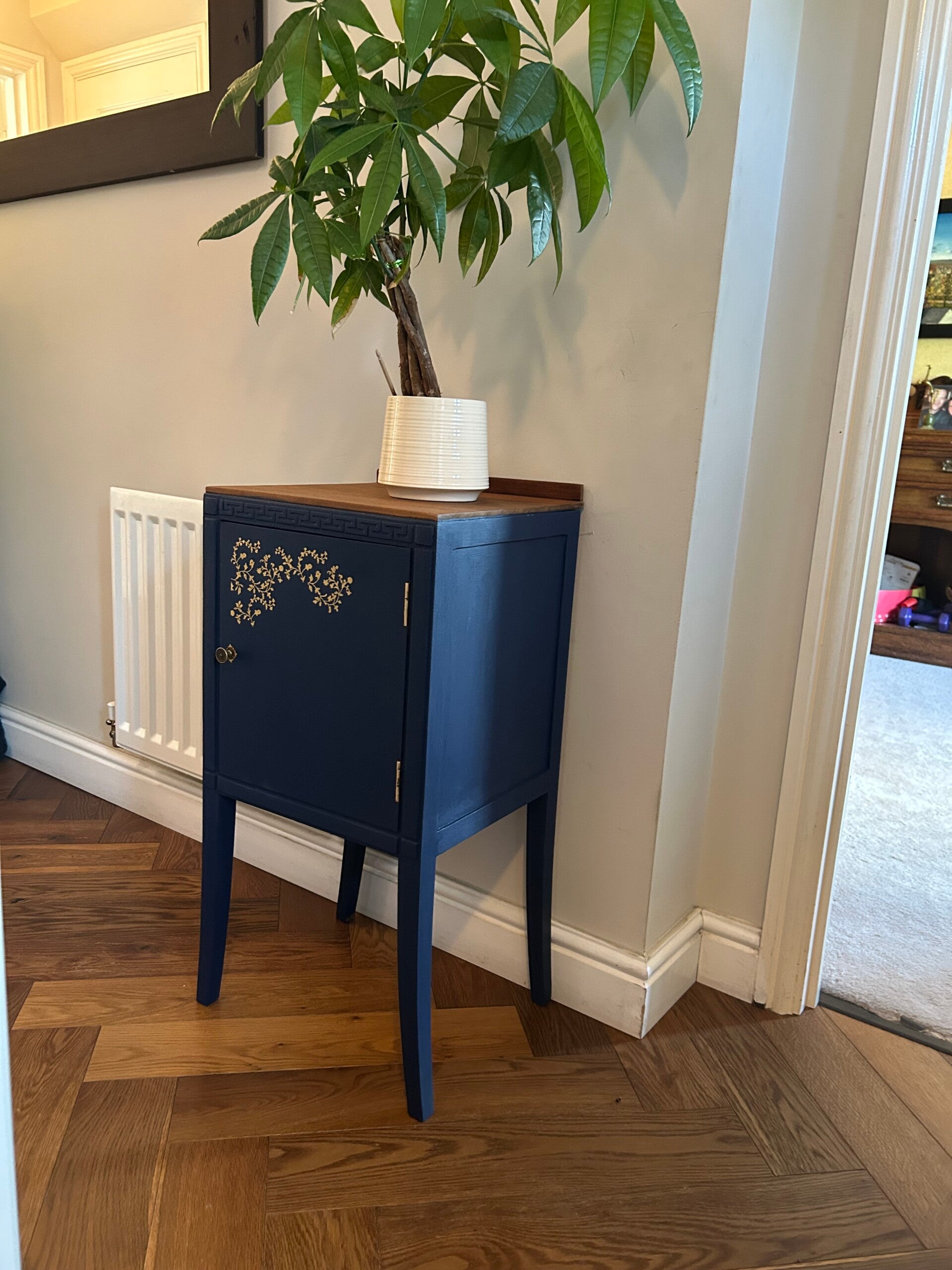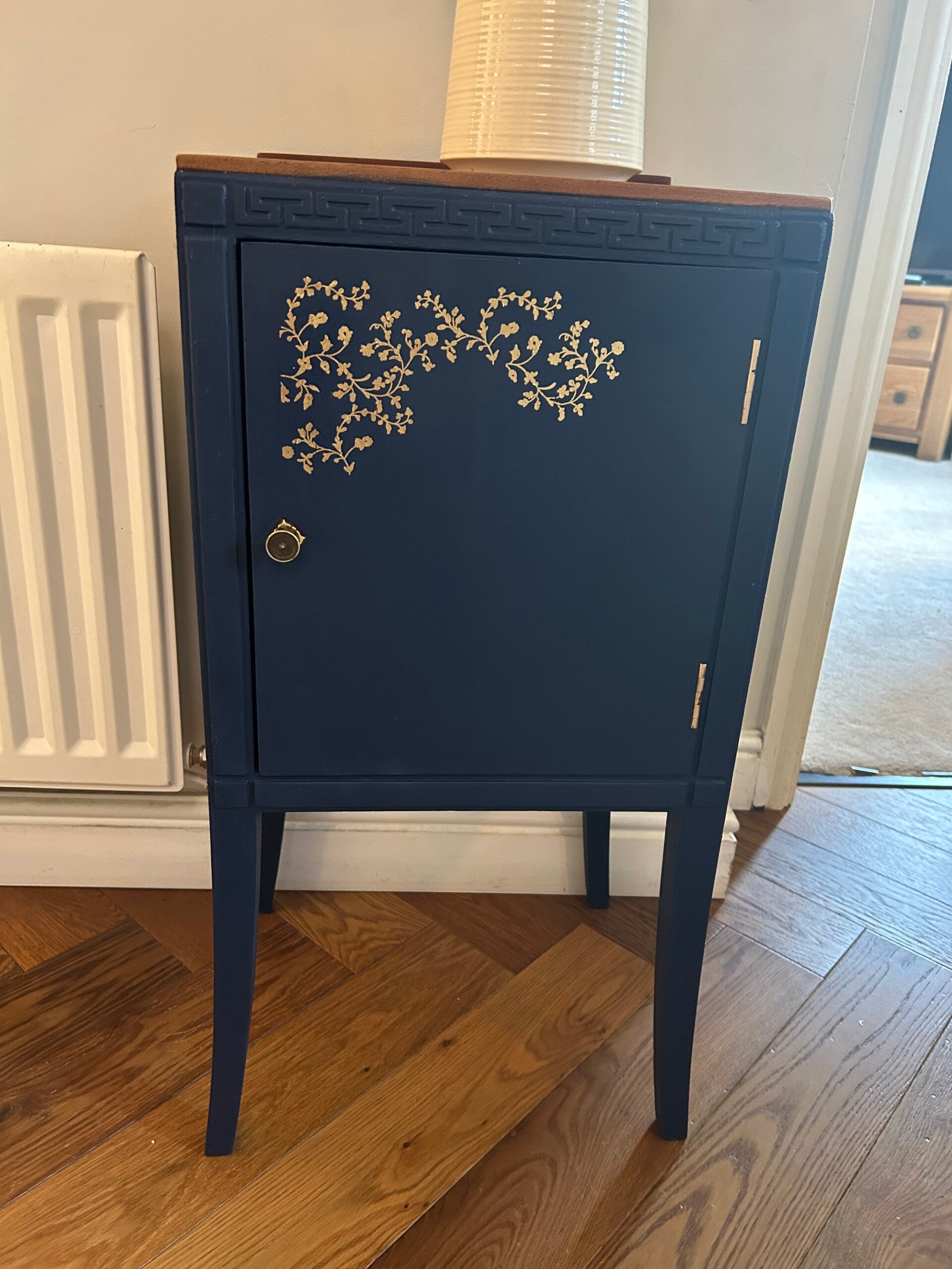 A charming vintage piece, lovingly up-cycled and perfect as a bathroom storage unit or bedside cabinet. Painted in French Chic – Hornblower Blue, it combines style and practicality.